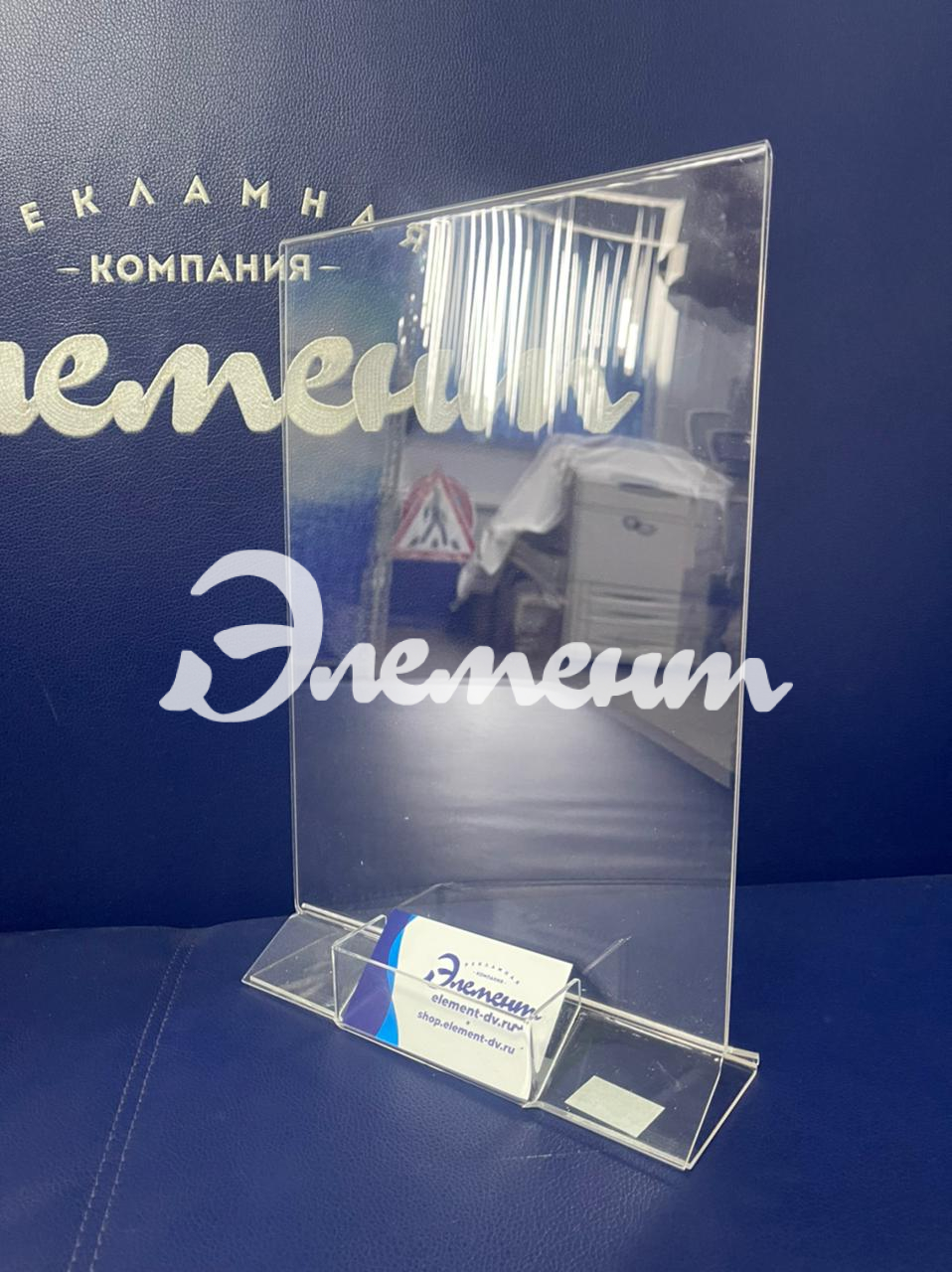 Подставка двусторонняя вертикальная с визитницей А4Интерьерная вывеска, витрина из акрила 200x100мм | "Элемент", Комсомольск-на-Амуре