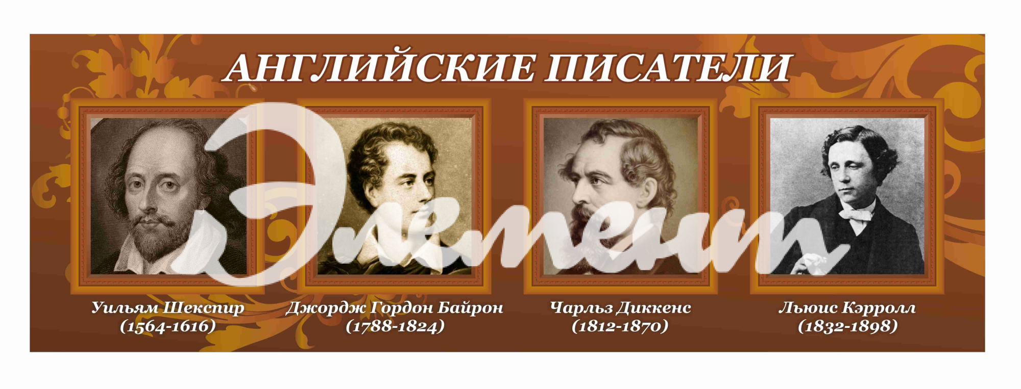 Услуга: Оформление кабинета Иностранных языков Aнглийские писатели 1500х500мм