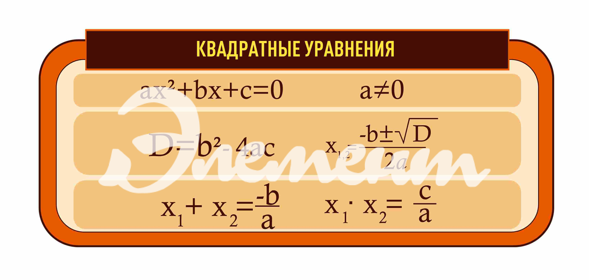Услуга: Оформление кабинета Математики Квадратное уравнение 1200х500мм
