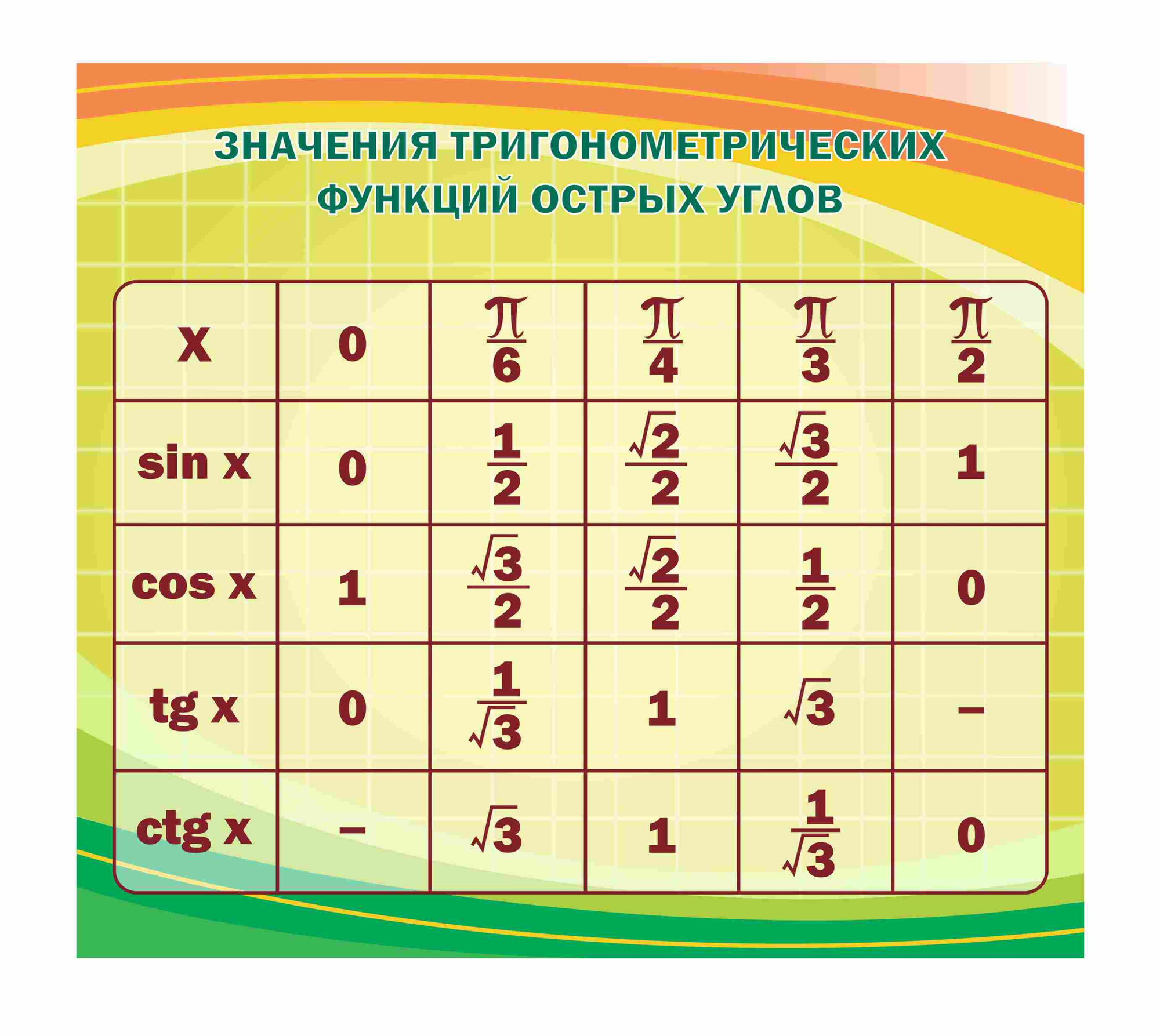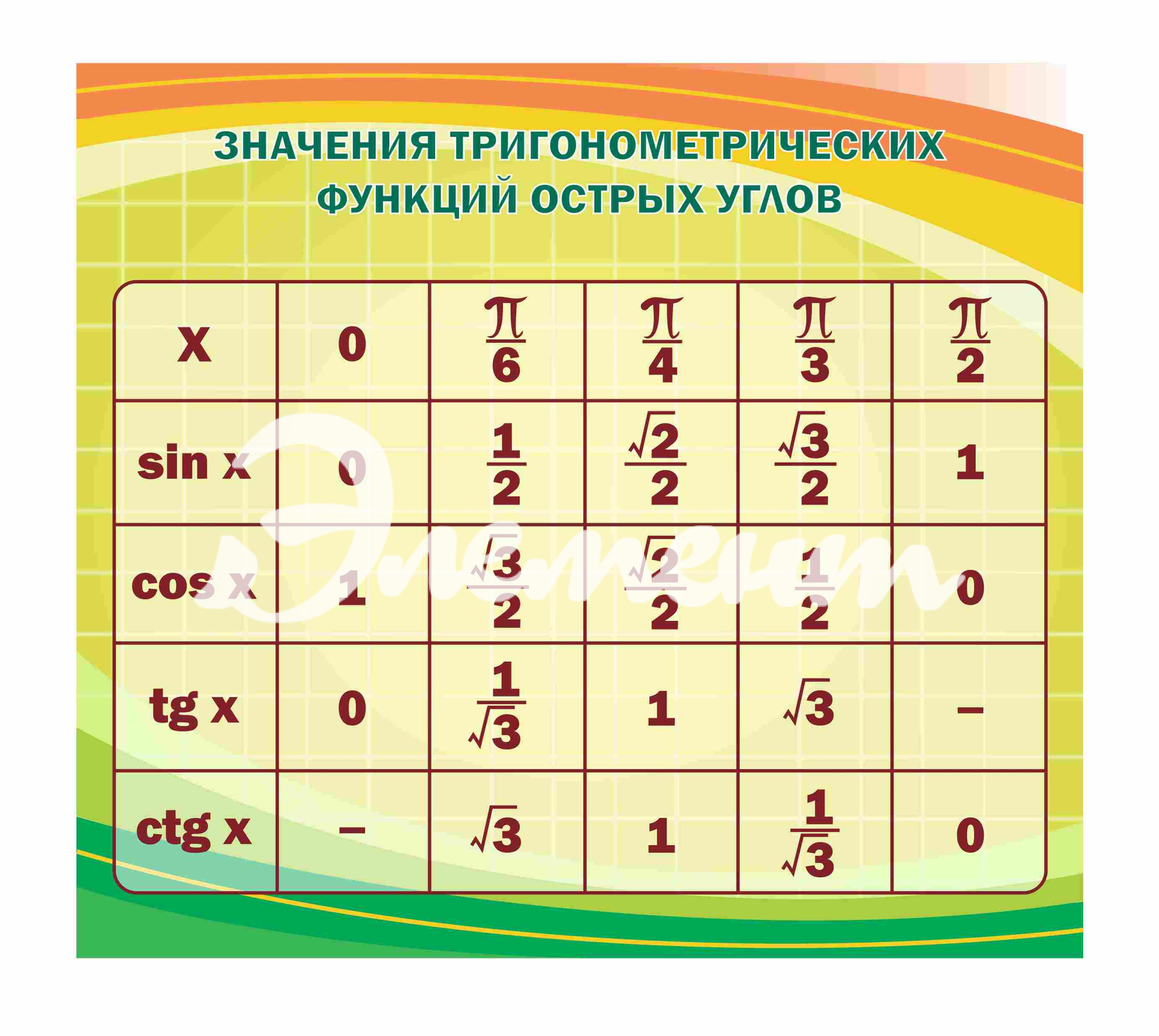 Услуга: Оформление кабинета Математики Значения тригонометрических функций 900х600мм