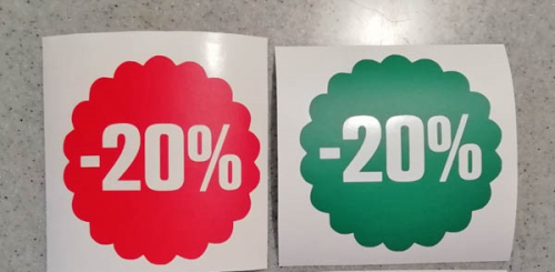 Стикеры-скидки. Работают в тех случаях, когда нет времени или возможности распечатать новые ценники. Можно наклеить сверху стикер со значком скидки. Так же можно наклеить на стекло для привлечения большего количества клиентов.