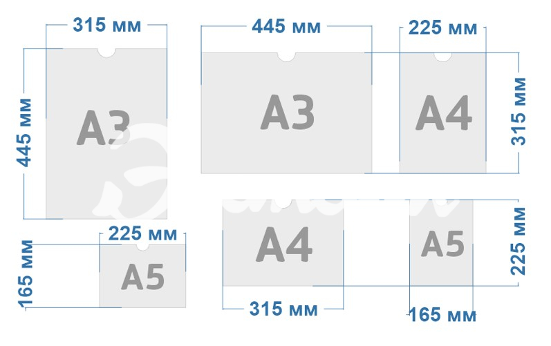 Стандартные размеры: А4 (210x297 мм), А5 (148x210 мм), А6 (105x148 мм)