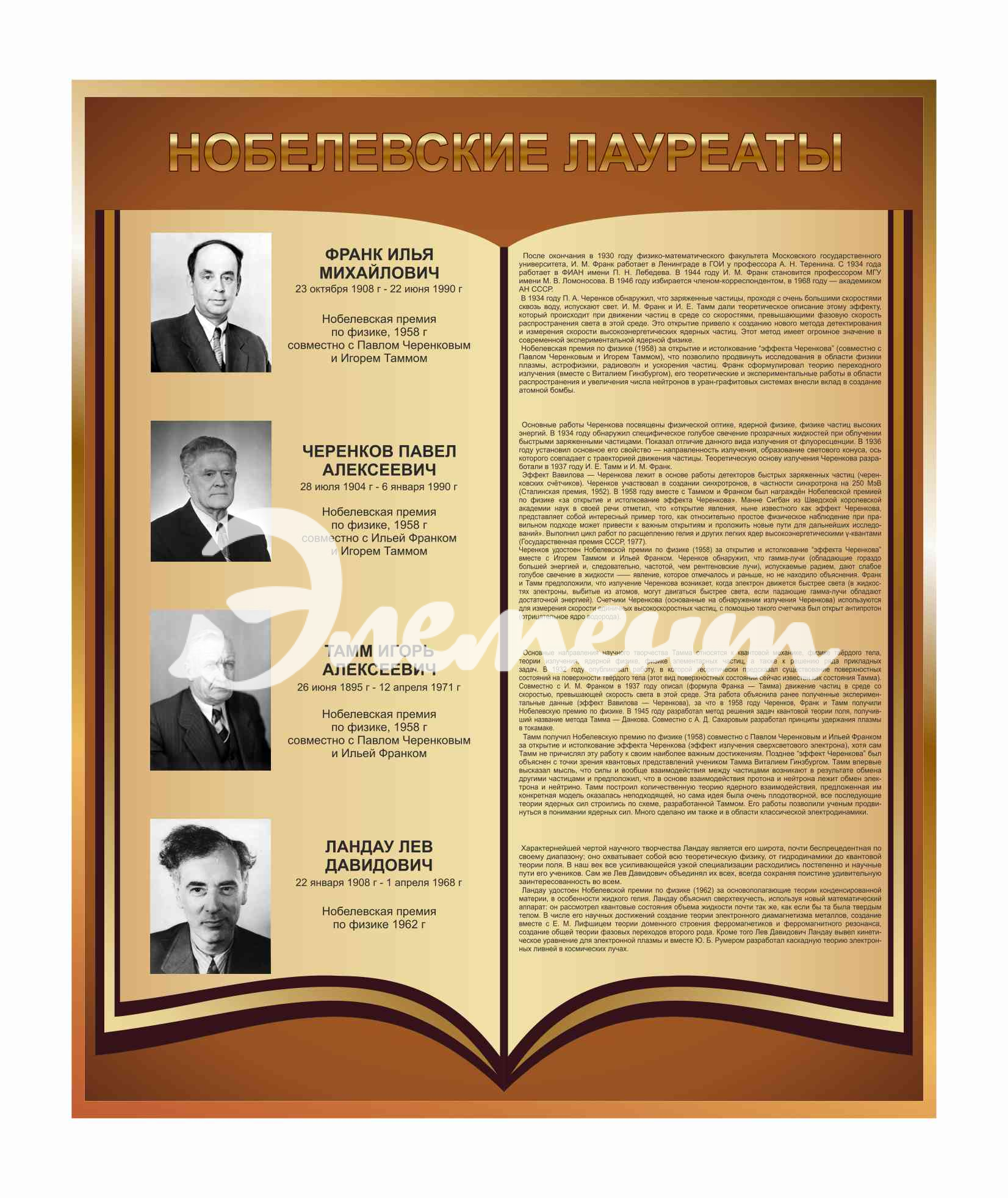 Оформление Фойе и рекреаций Нобeлевские лауреаты 1000х1200мм