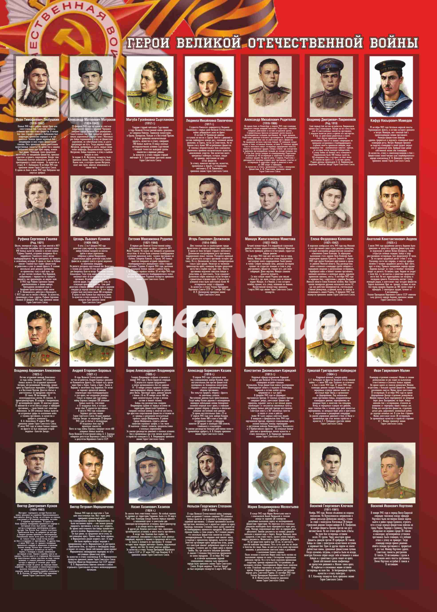 Оформление кабинета Истории Герои ВОВ 1000х1400мм