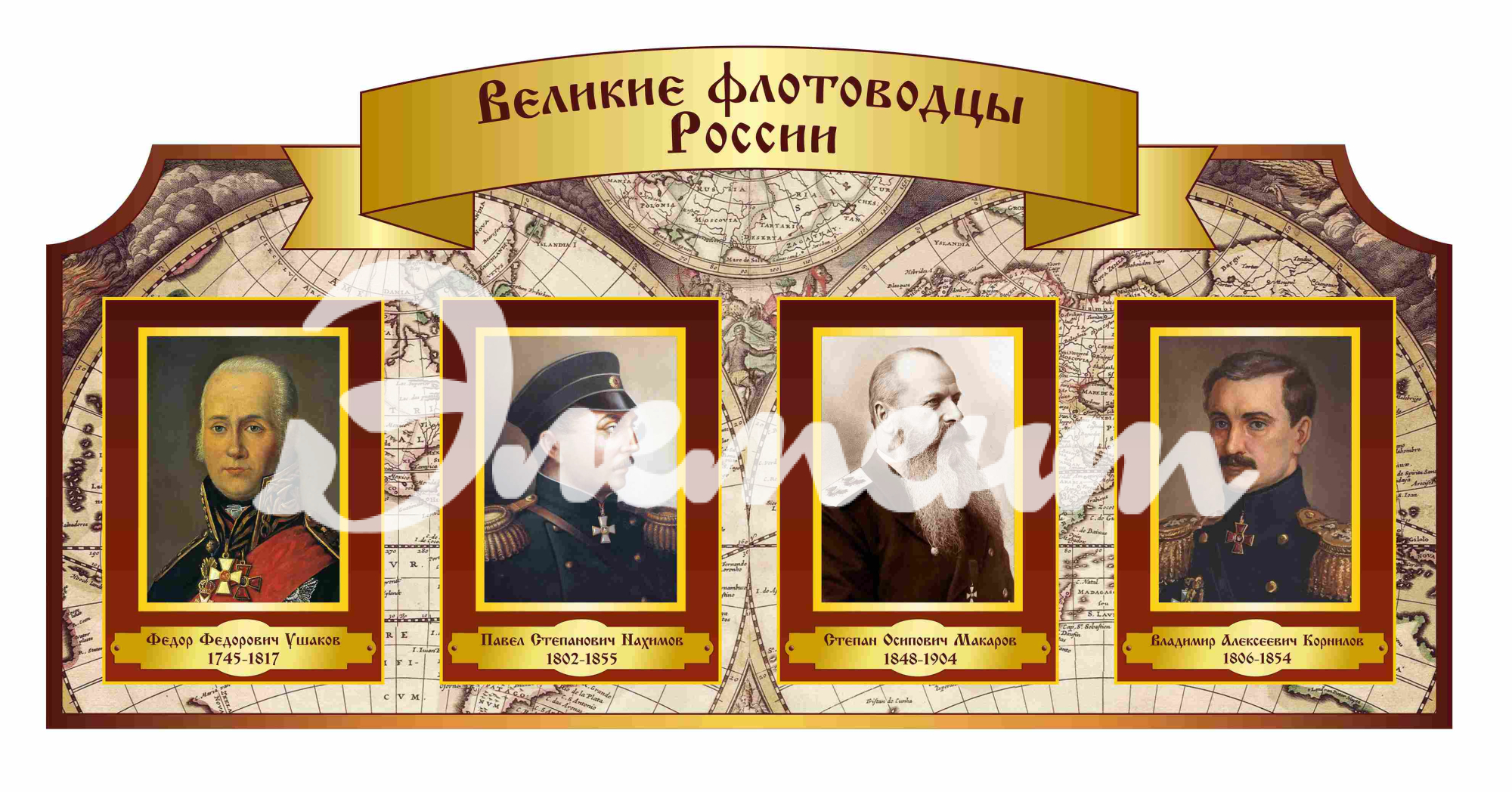 Услуга: Оформление кабинета Истории Великие флотоводцы 1300х600мм