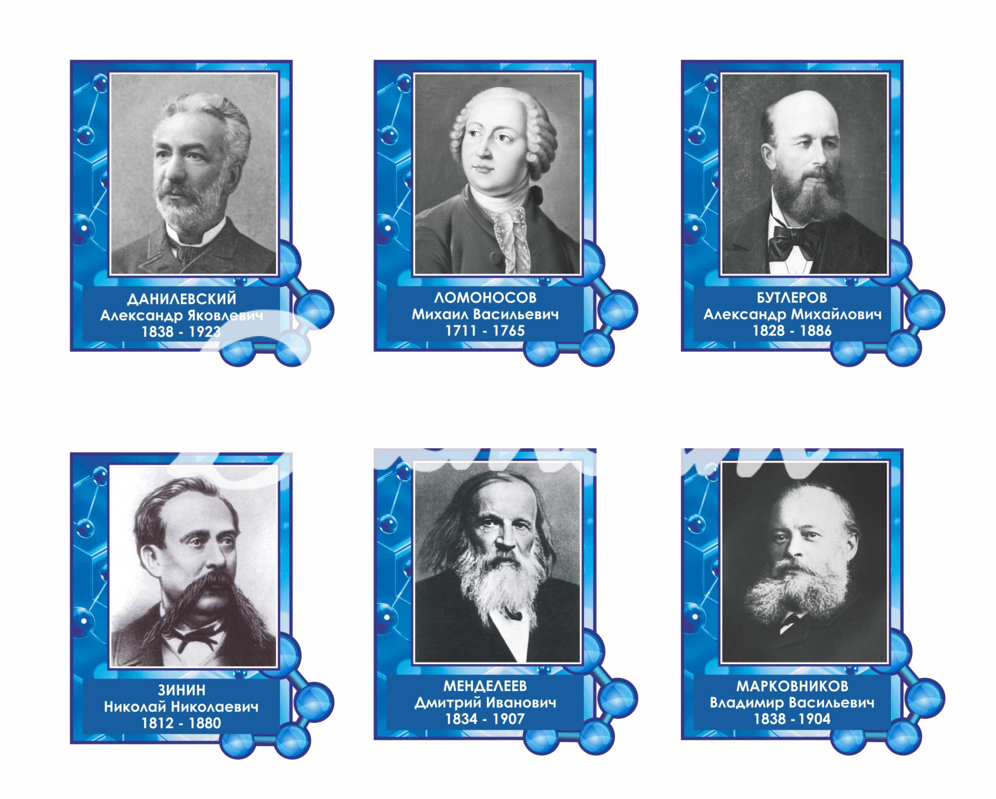Услуга: Оформление кабинета Химии Портреты 430х500мм 6шт.