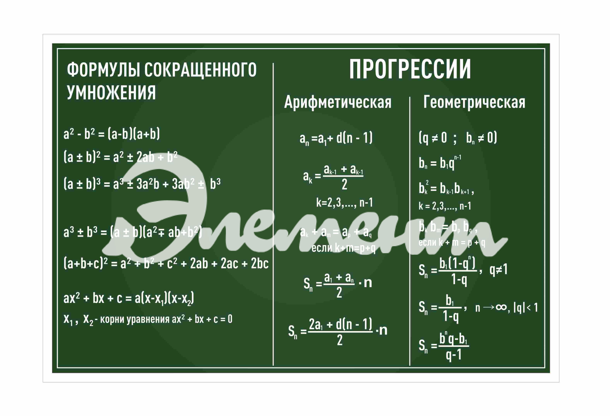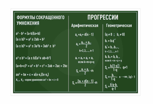 Услуга: Оформление кабинета Математики Формулы сокращенного умножения прогрессии 1100х700мм