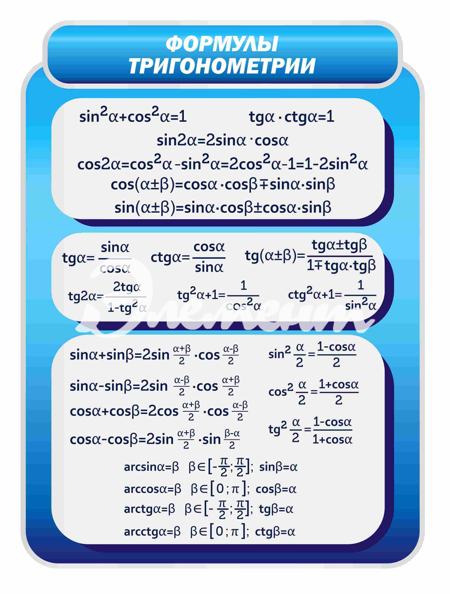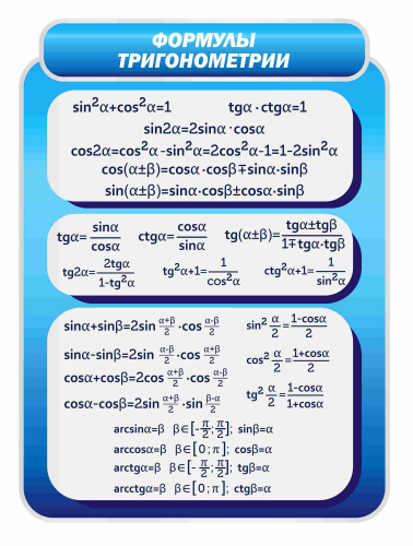 Услуга: Оформление кабинета Математики Формулы тригонометрии 700х950мм