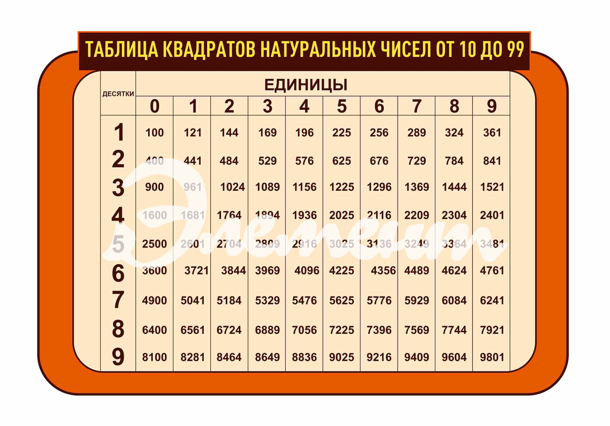Оформление кабинета Математики Таблица квадратов натуральных чисел 1000х700мм