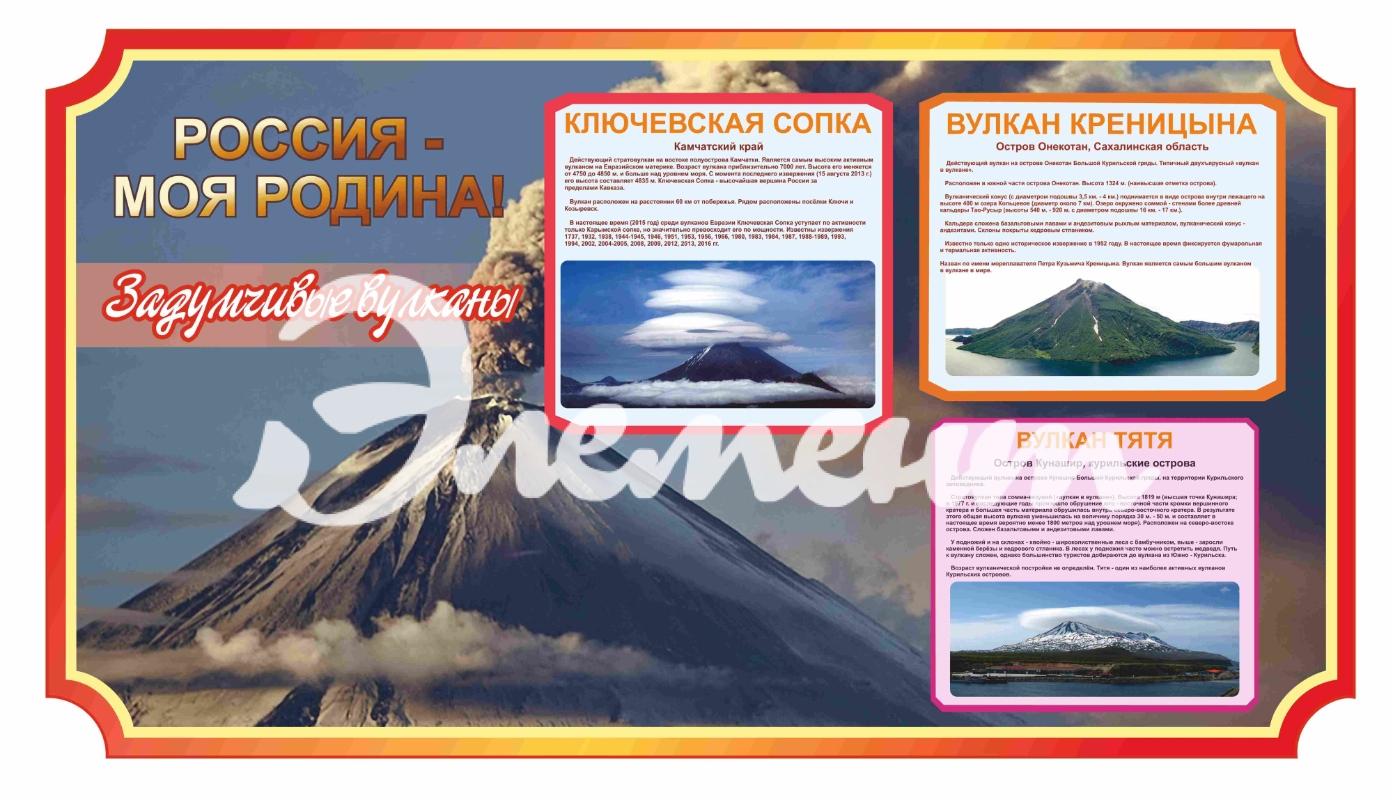 Оформление кабинета о России Задумчивые вулканы 1700х900мм