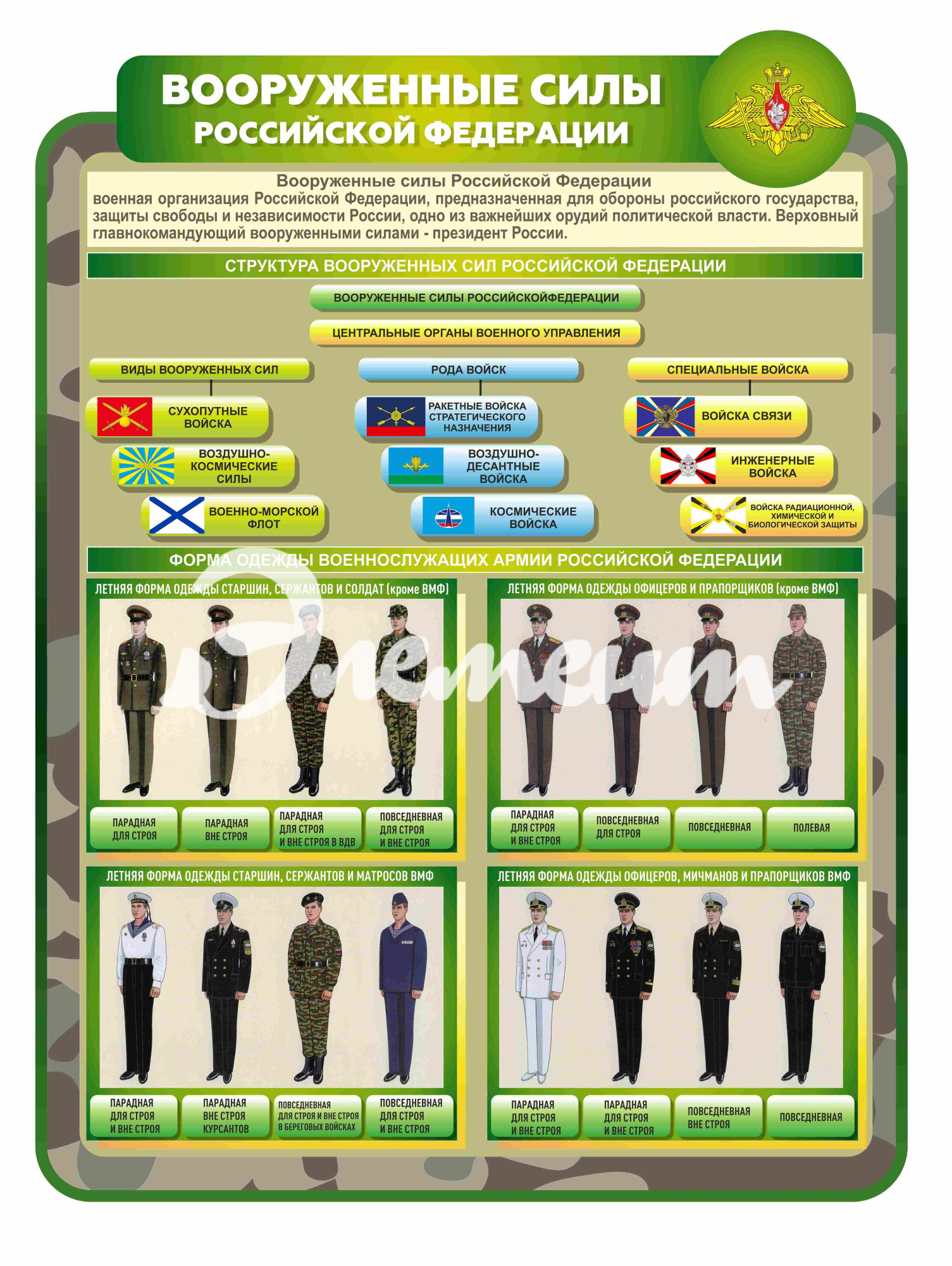 Услуга: Оформление кабинета ОБЖ Вооруженные силы РФ 820х1100мм
