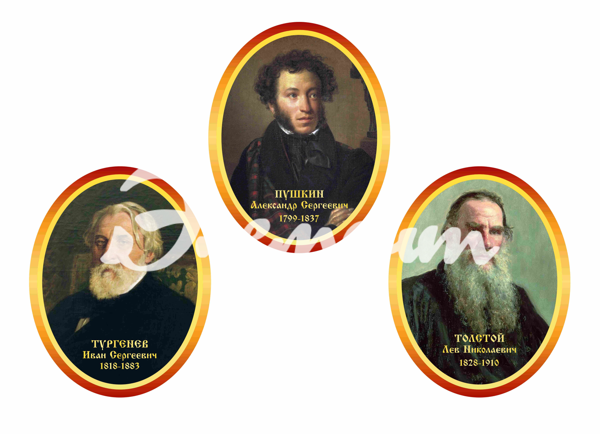 Услуга: Оформление кабинета Русского языка Портреты 630х800мм 3шт.