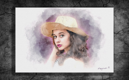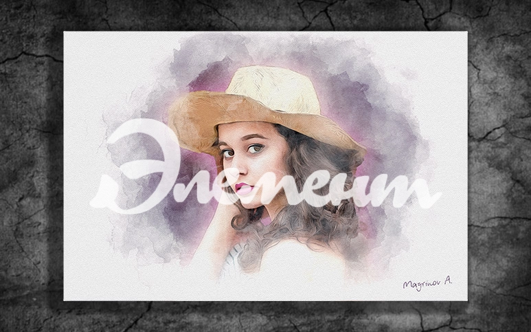 Стенд Портрет на холсте в обработке стилем "Акварель"