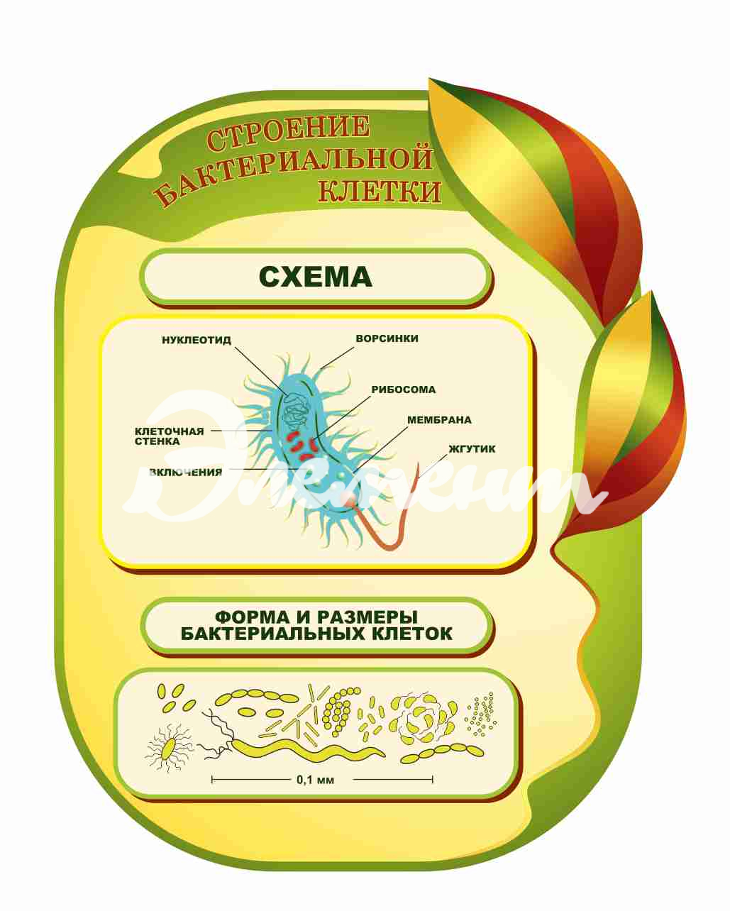 Услуга: Оформление кабинета Биологии Строение бактериальной клетки 735х860мм