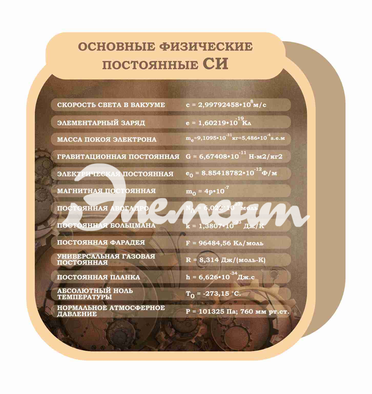 Услуга: Оформление кабинета Физики Основные физические постоянные 880х900мм