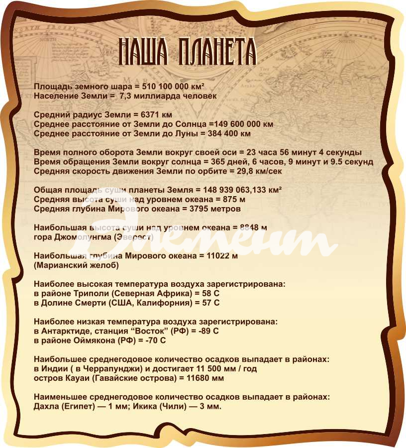 Оформление кабинета Географии Наша планета 1000х1100мм