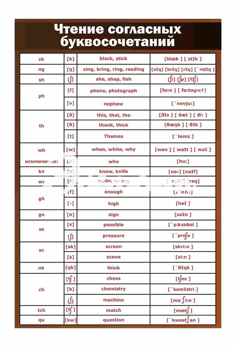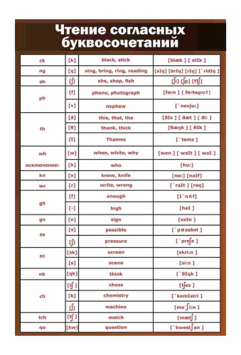 Оформление кабинета Иностранных языков Чтение согласных буквосочетаний 600х900мм