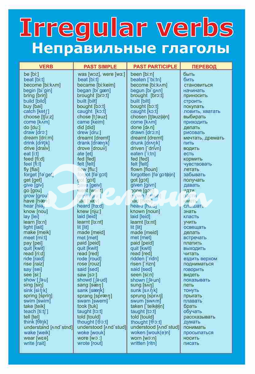 Оформление кабинета Иностранных языков Неправильные глаголы 600х900мм