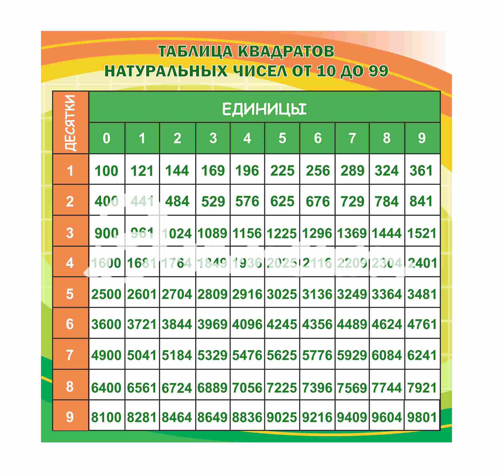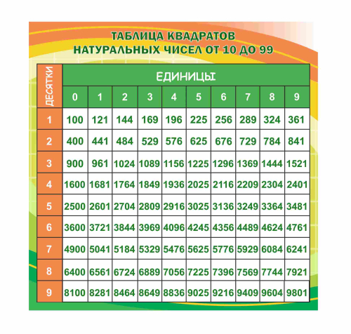 Услуга: Оформление кабинета Математики Таблица квадратов натуральных чисел 600х600мм