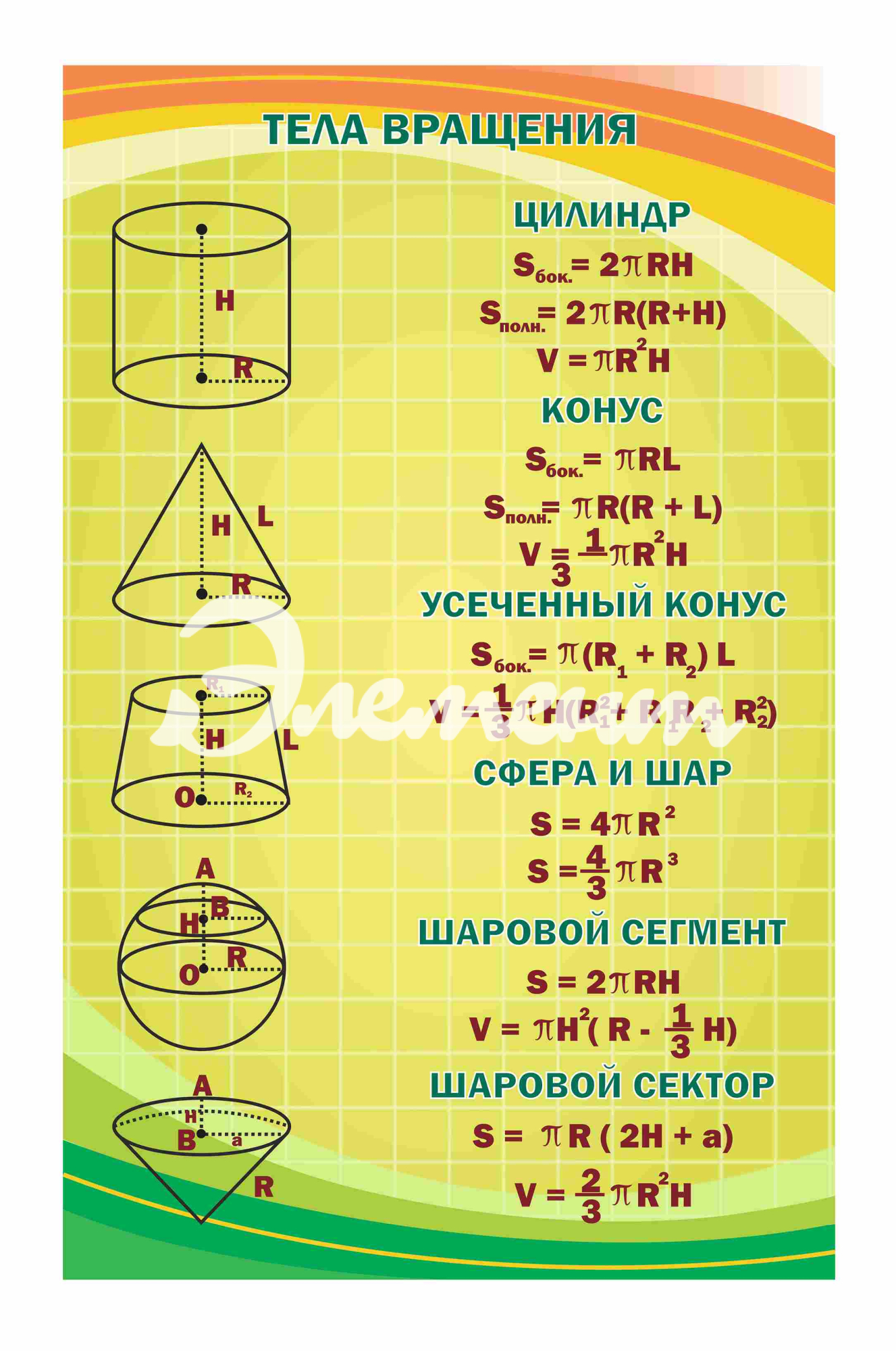 Услуга: Оформление кабинета Математики Тела вращения 700х1100мм