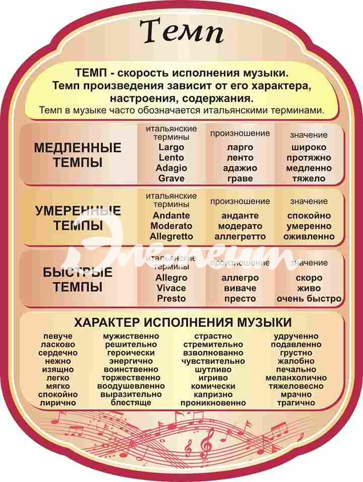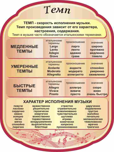Услуга: Оформление кабинета Музыки Темп 1500х900мм
