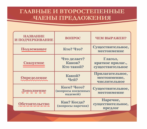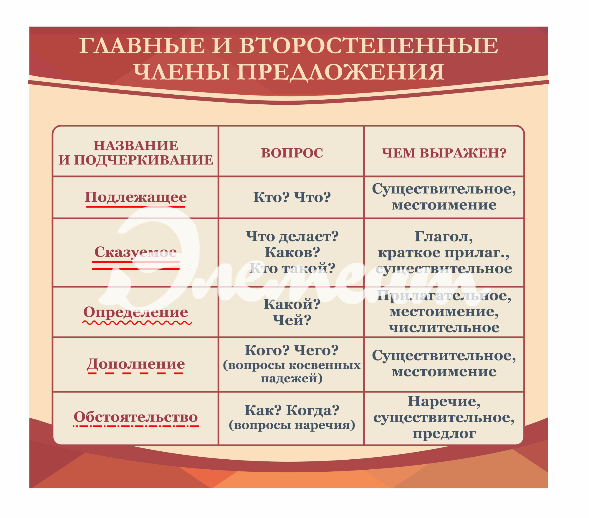 Оформление кабинета Русского языка Члены предложения 900х800мм