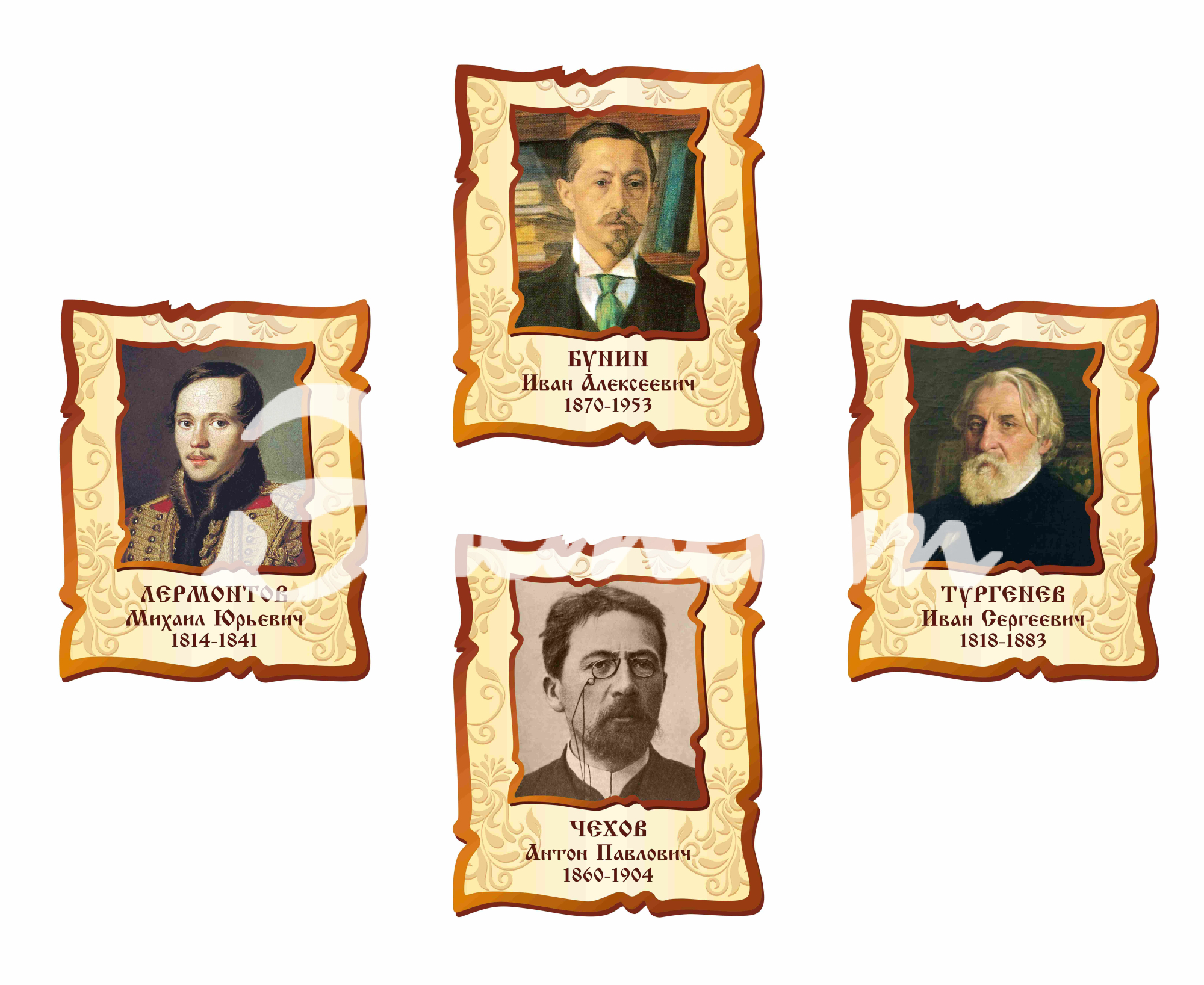 Услуга: Оформление кабинета Русского языка Портреты 400х500мм 4шт.