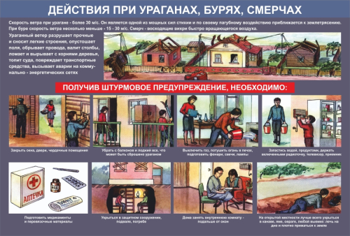 Тематический стенд Действия при ураганах, бурях, смерчах 900х610мм
