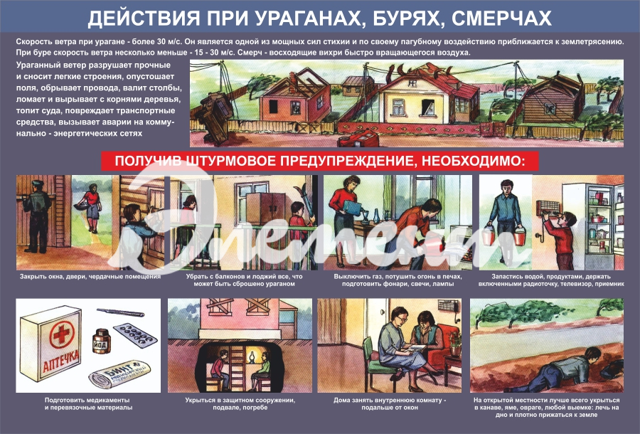 Услуга: Тематический стенд Действия при ураганах, бурях, смерчах 900х610мм
