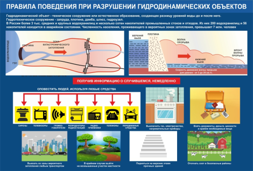 Тематический стенд Правила поведения при разрушении гидродинамических объектов 900х610мм