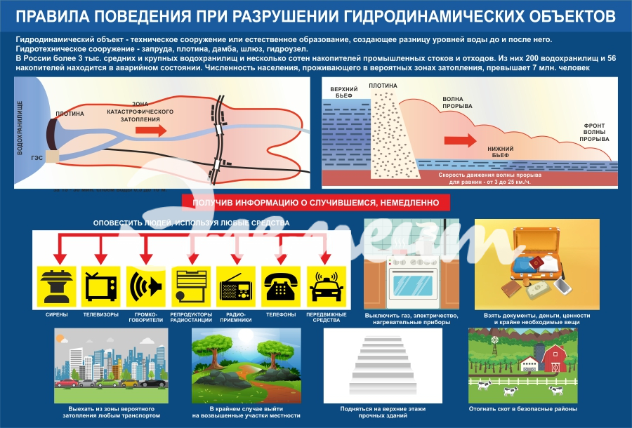 Услуга: Тематический стенд Правила поведения при разрушении гидродинамических объектов 900х610мм