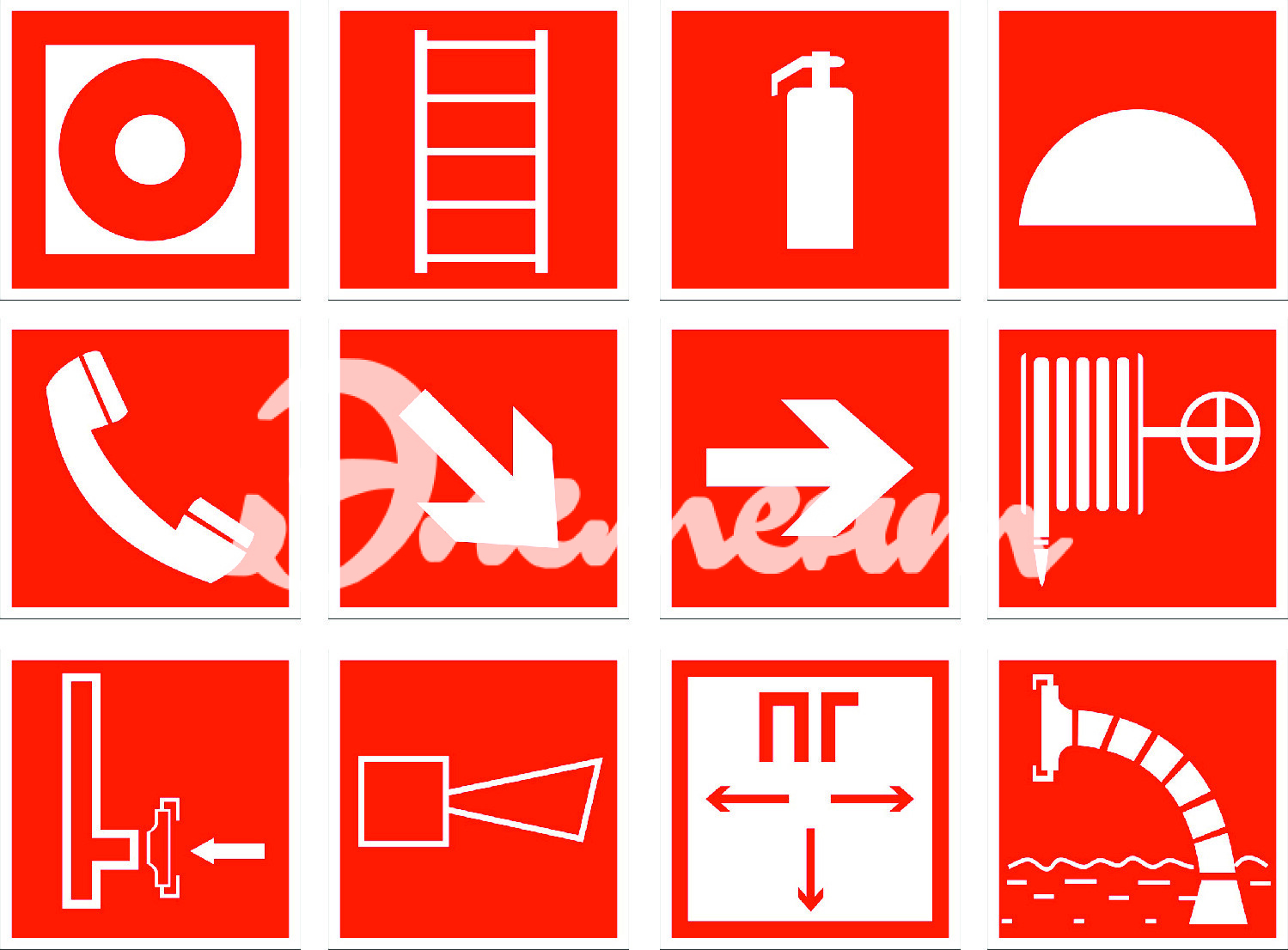 знаки пожарной безопасности размером 200×200 мм и 300×150 мм.