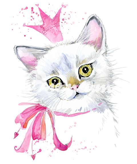 Белая котичка в розовой короне магниты и медали с логотипом на заказ