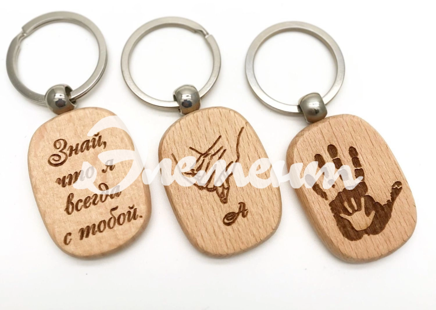 Брелоки, изготовленные из натурального дерева и украшенные гравировкой, имеют ряд