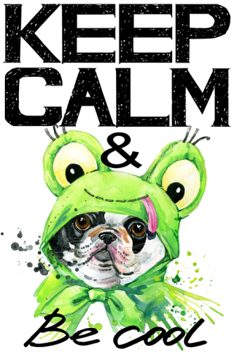 KEEP CALM and Be cool. Мопс в костюме лягушки