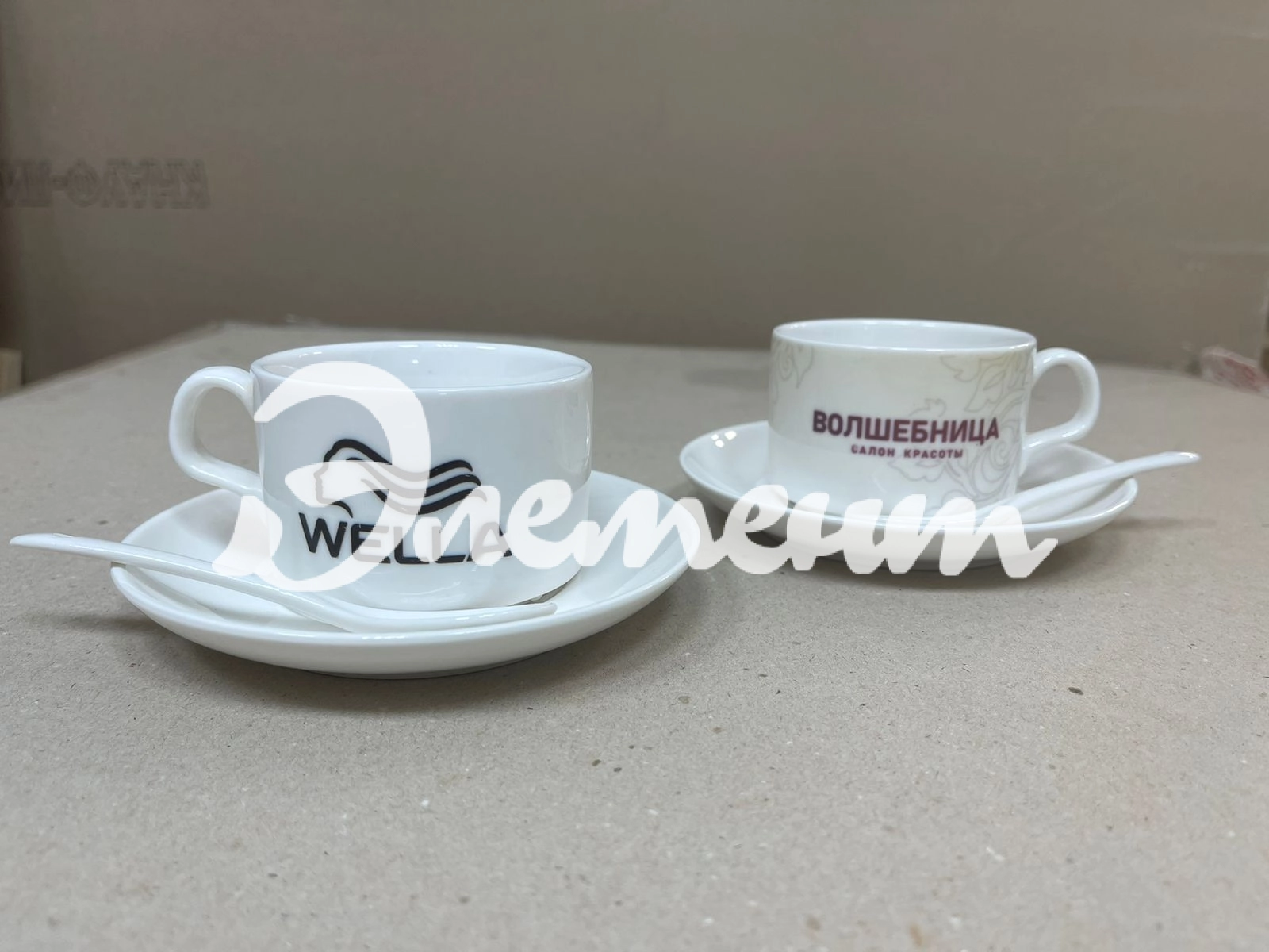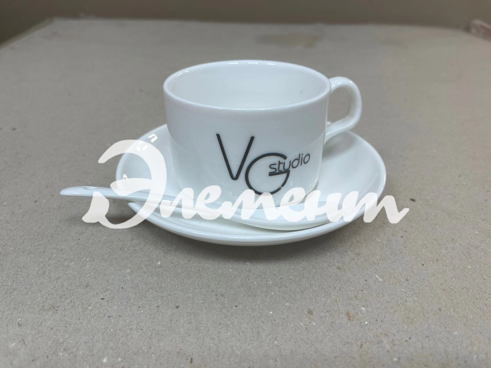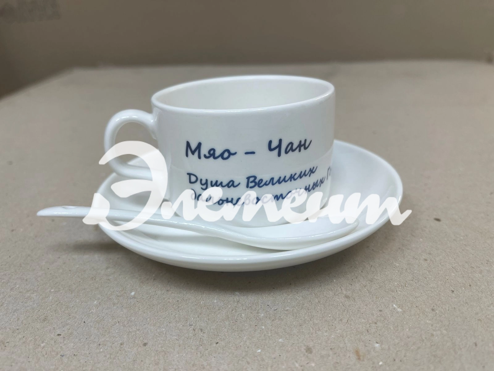Цена за комплект(чашка, блюбце, ложка), стоимость макета в цену не входит.