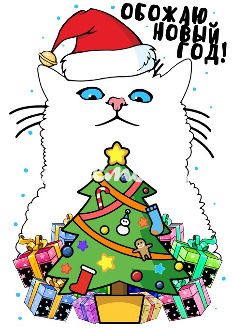 Услуга: Обожаю Новый год. Белый котик и ёлка