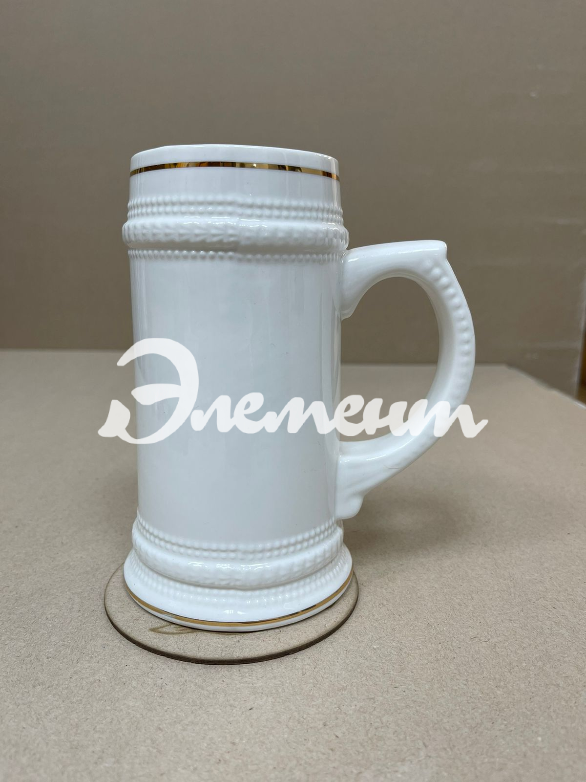 Пивная кружка обладает поверхностью, подготовленной для сублимационной печати