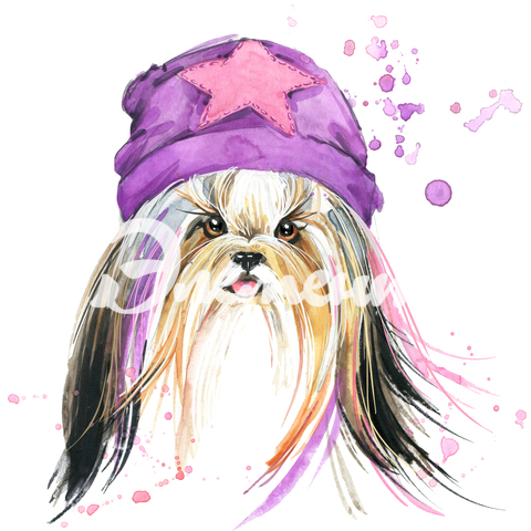 Ши-тцу в розовой шапке
