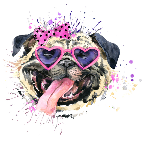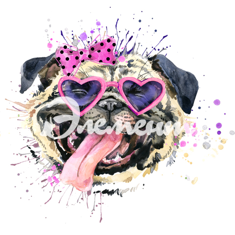 Услуга: Смешной улыбающийся мопс в розовых очках и бантике
