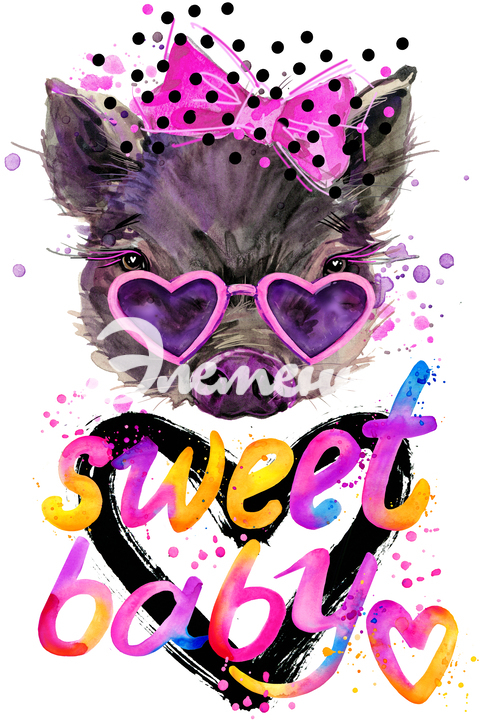 Sweet baby. Хрюшка в розовых очках магниты и медали с логотипом на заказ